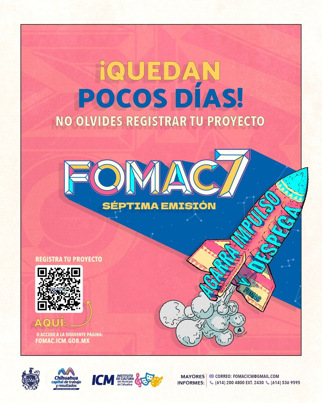 Chihuahua, Chih. A 17 de noviembre del 2023.- La convocatoria para participar en el Fondo Municipal para Artistas y Creadores (FOMAC) en su séptima emisión, está a una semana de cerrar, por lo que se le recuerda a la ciudadanía interesada en participar que se siguen recibiendo todos los proyectos, que busquen formar parte de esta plataforma de desarrollo para la cultura y las expresiones artísticas en la Capital, hasta el 24 de noviembre del 2023.