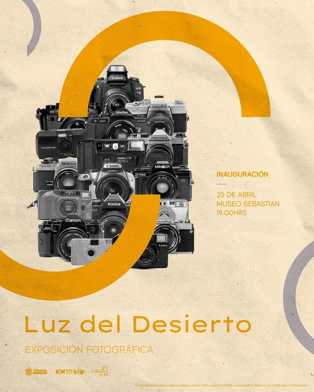 El Instituto de Cultura del Municipio, invita a la comunidad a la inauguración de la exposición "Luz del Desierto", una muestra fascinante creada de fotografía, este jueves 25 de abril a las 7:00 pm en el Museo Sebastian (Patio Central).
